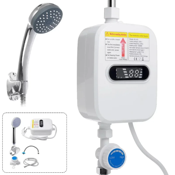- 🔥 تسخين سريع 3500 واط:الماء كيسخن فثواني، بلا انتظار وبلا معاناة مع البرد..